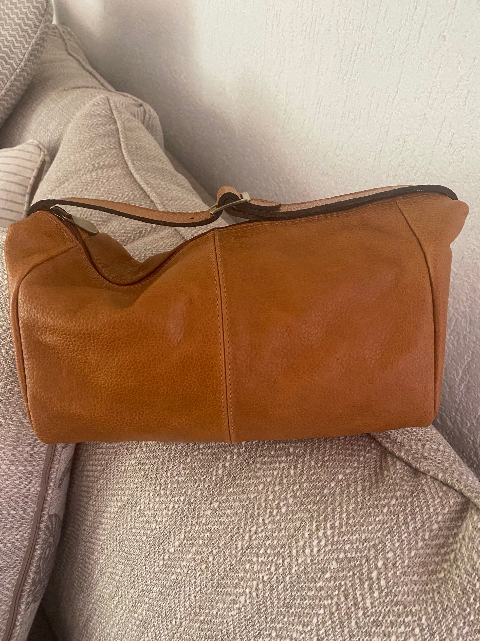 Precioso neceser en cuero Caramelo hecho a mano 100%cuero, forrado con cierre y correa ajustable.